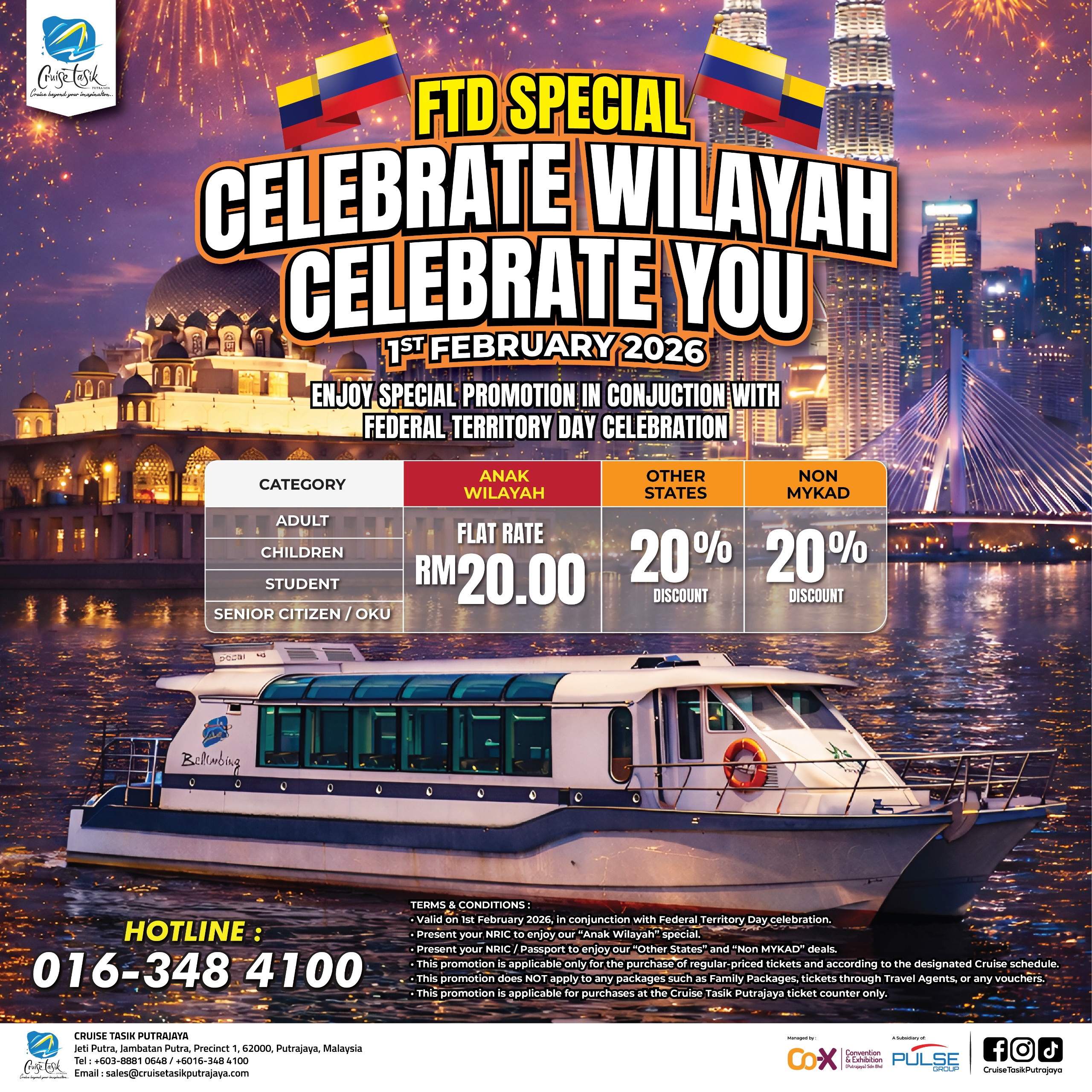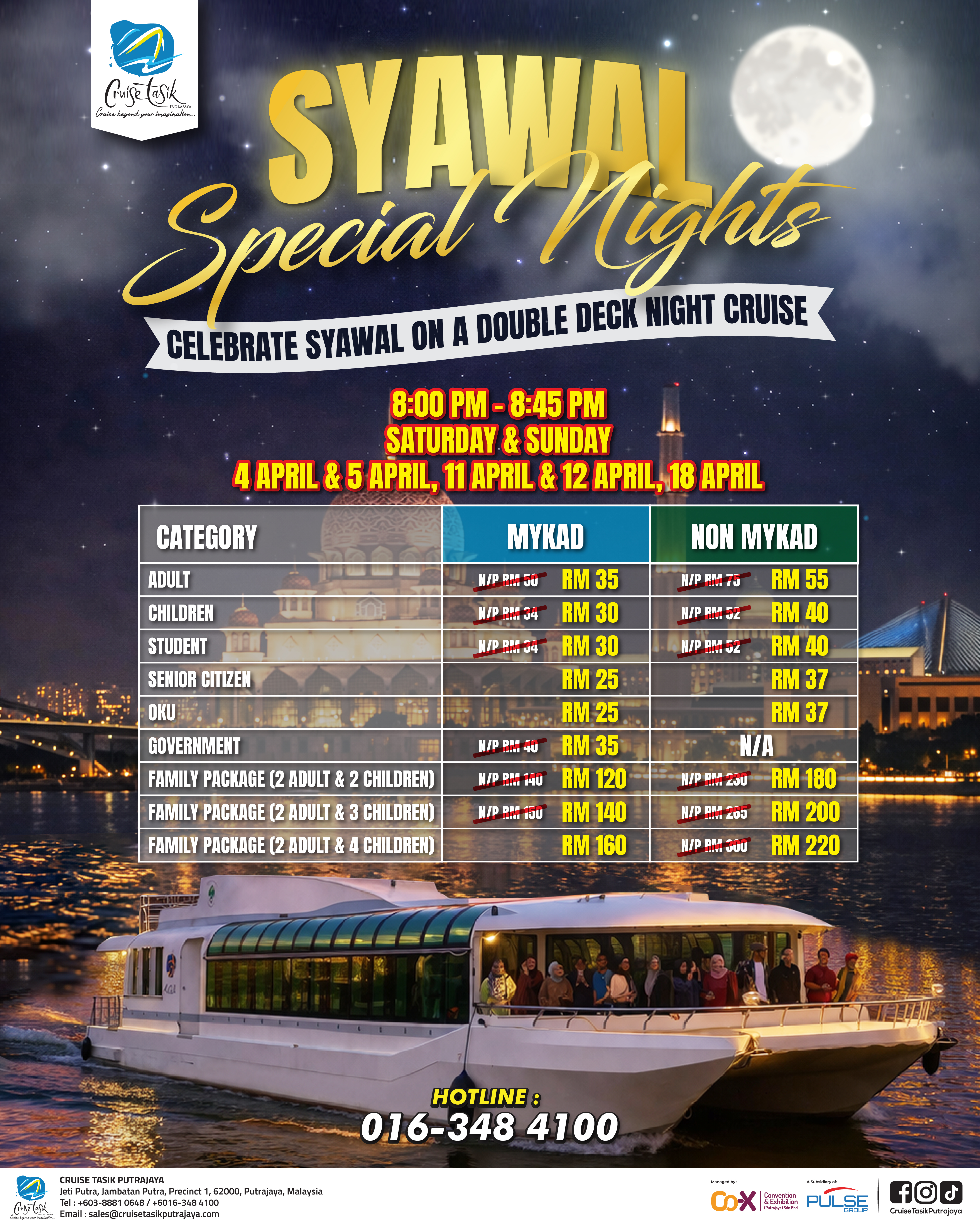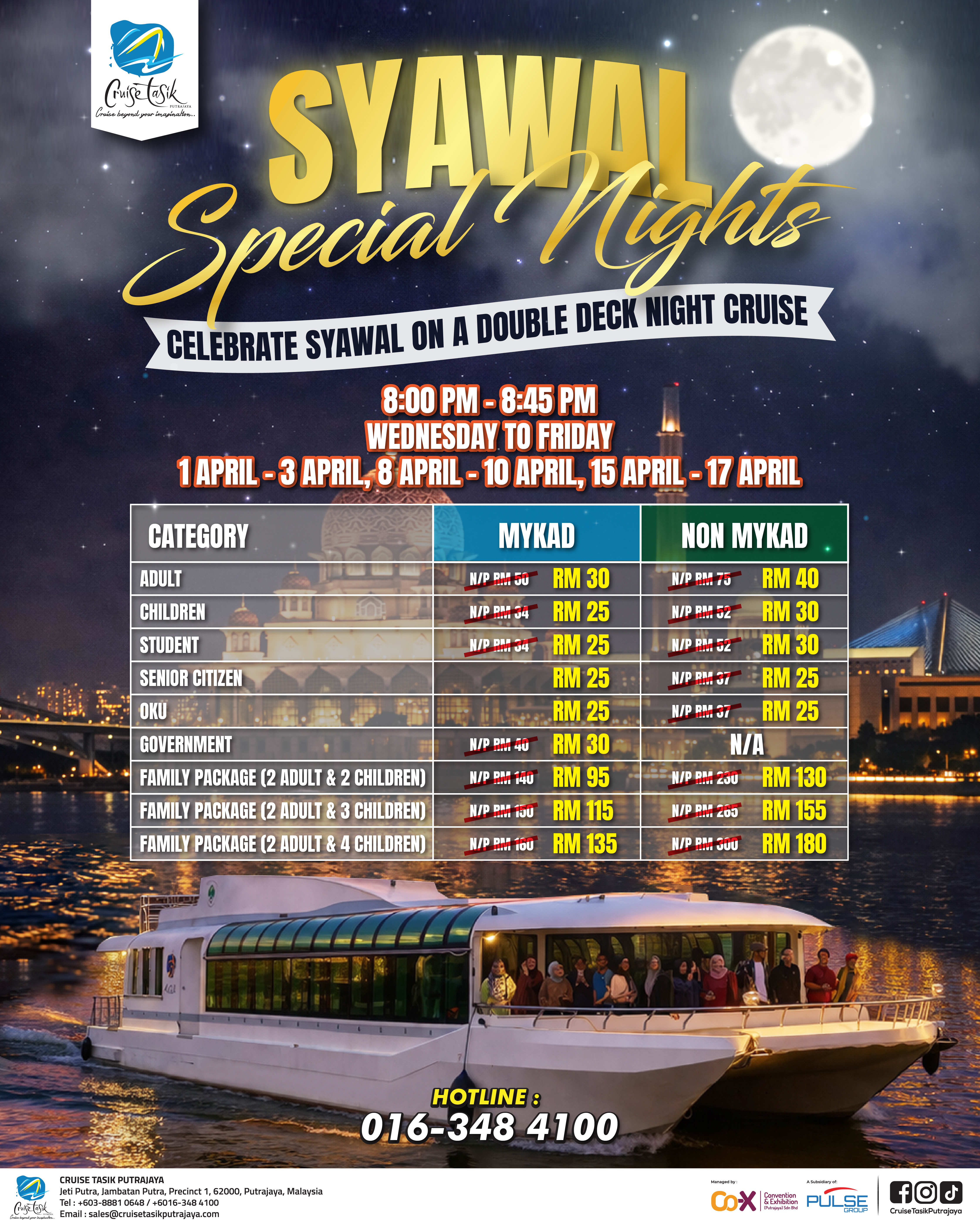 Phone: +(603) 8881 0648 Hotline: +(601) 6348 4100 Email: sales@cruisetasikputrajaya.com